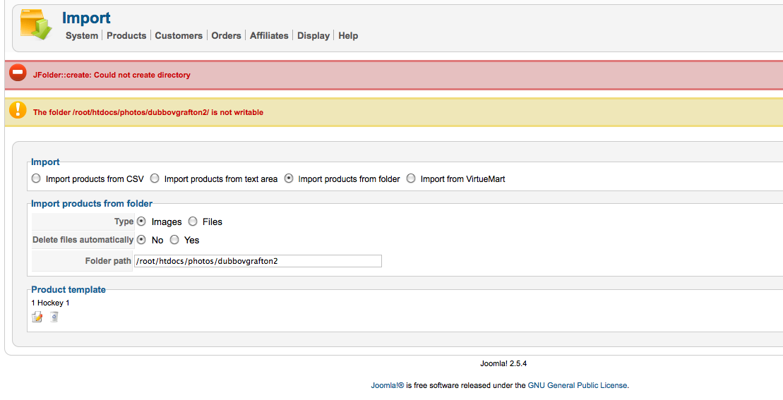 I am trying to import photos to products without success. I have uploaded all my photos via ftp and ensured all files and folders are writable. I have attached a screenshot of the message i keep getting and the info i am entering. Thnaks