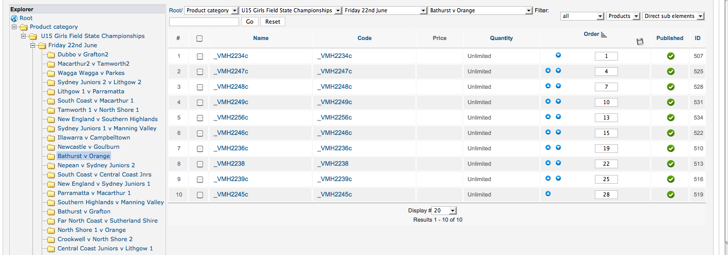 I have also tried going into content menus and changing the ordering field to product_name but I am still getting the same result.