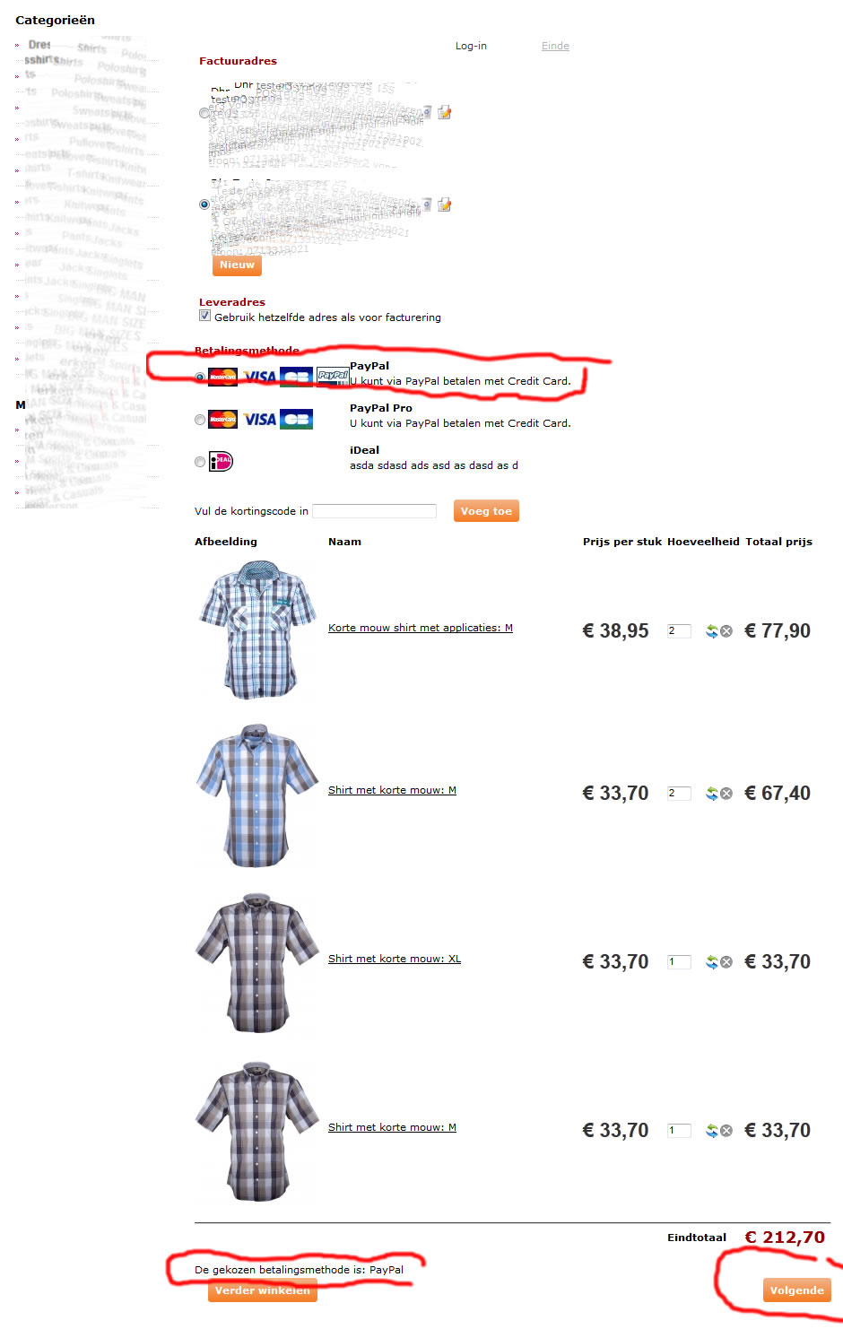 I have set up a site for a client of me, and after you choose payment option (paypal/iDeal) and I click NEXT, nothing happens and the same page loads. What am I doing worng, I can't figure it out.