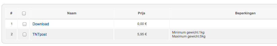 TNTPOST -> Min 1kg and max 5kg set to price 5.95