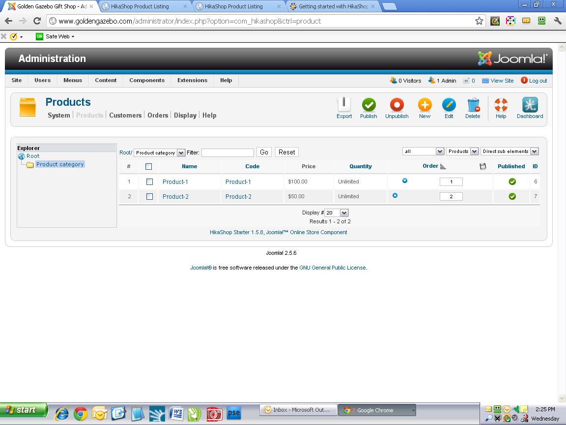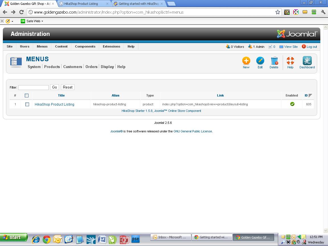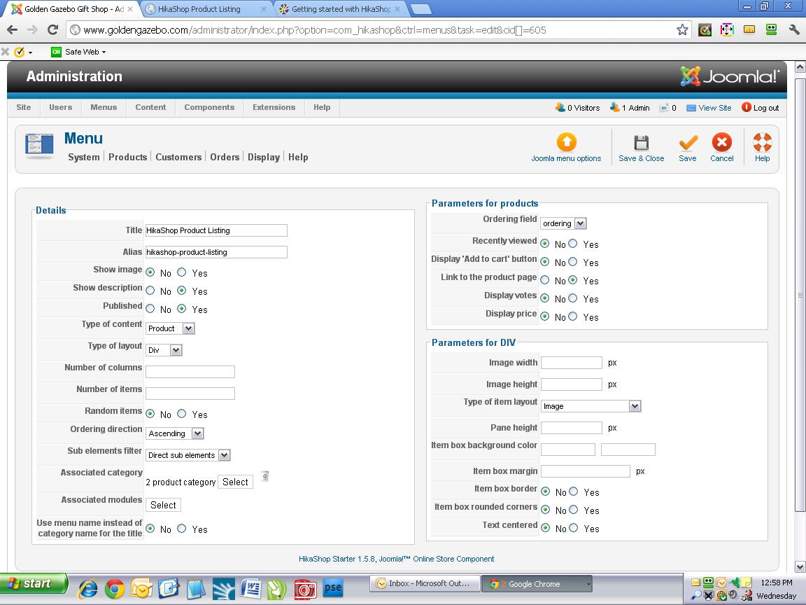 Thank you for our response. I have followed your instructions which create a main menu item (which I called Products, and then followed the HikaShop Options link on the right-hand side of the page, to Menu settings. I then click on the Products>Add a New Product link, where I have added two products with descriptions and images for each. When I view my site, the main menu item (Products) is there as it should be, BUT clicking on it brings me to a blank page--no products. Apparently my Products page is not linked to my main menu item for Products, but I don't understand what I need to do to link the two so my products will show when the menu item is clicked. Can you help?