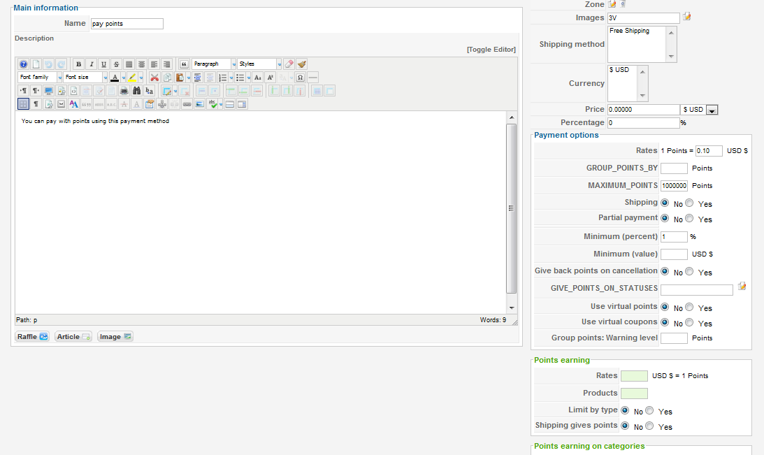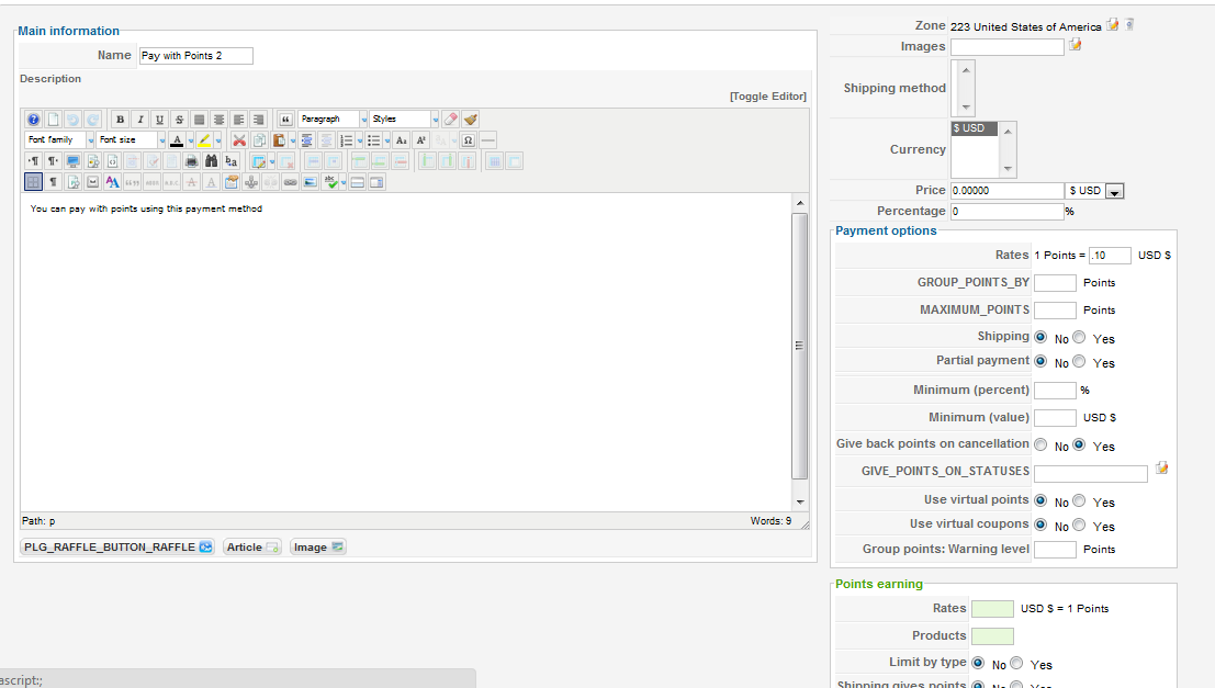 Please remove the zone restriction and the currency restriction from the AlphaUserPoints plugin. Then, make sure that you also set a big maximum number of points (MAXIMUM_POINTS option).