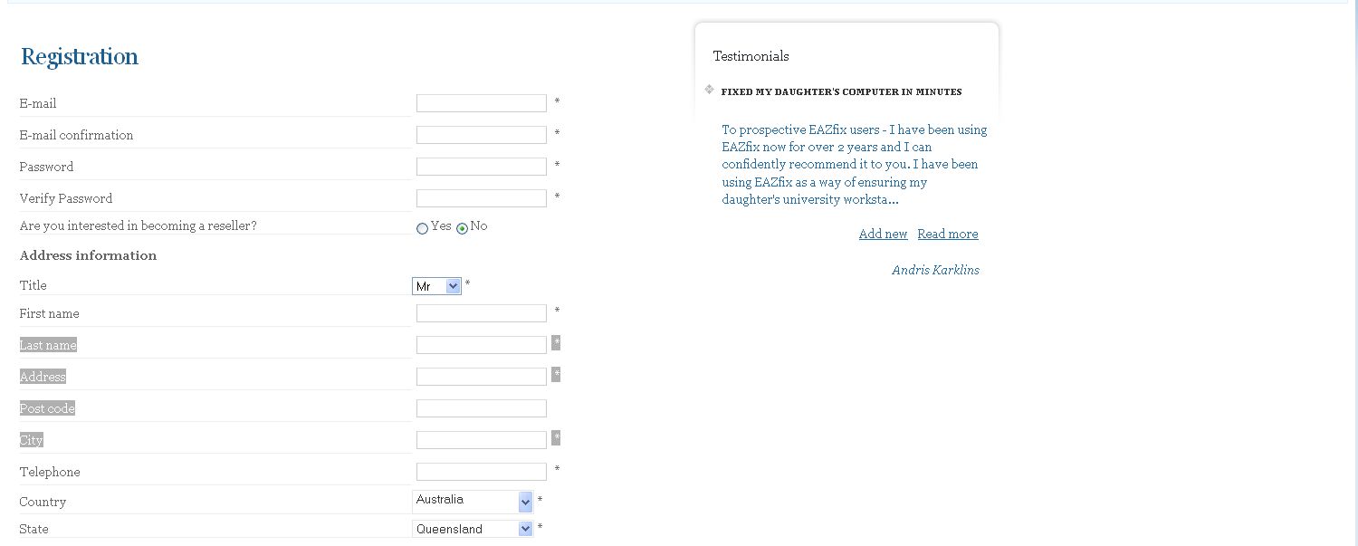 On the other pages the main section has a class push_3 and the aside has a class pull_6 while the on the registration page, these classes are not there.