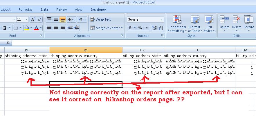However, I knew it is hard to do some customize the orders exported report hikashop like : Name - email - billing address something like that for now .. :( hopefully in future :) but I noticed when I export orders as CSV exel in language for example arabic it show strange characters :( pls see attach.
