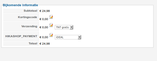 "Payment method : You will see here the name of the payment method selected by the customer during the checkout process. Once you changed it, a popup will open asking you more information about why you are changing it (great for later reference). If you want to notify the customer of the change, a notification email interface will also be displayed in that popup. Note that if you removed the payment view from the workflow of the checkout process, the customer will not be prompted to select a payment method and the dropdown won't be visible."