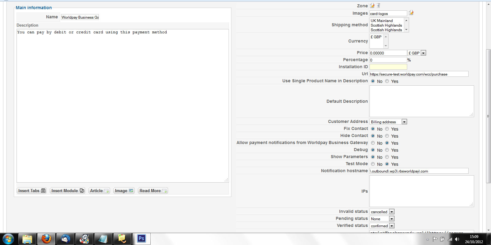 Worldpay Business Gateway Not Showing