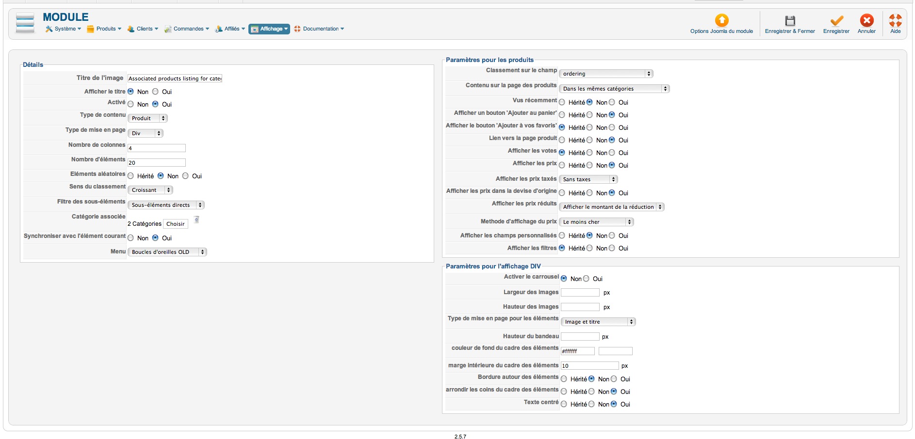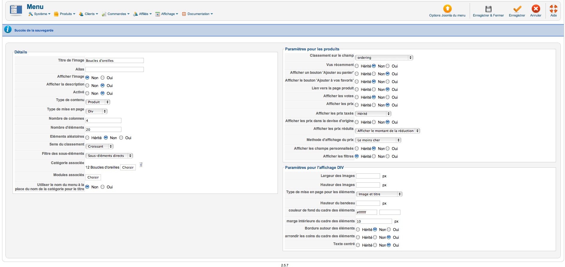 Je désire afficher mes catégories sur 4 colonnes. J'ai créé un item de menu sous Joomla et configuré les options Hikashop et sur ce plan, ça fonctionne.