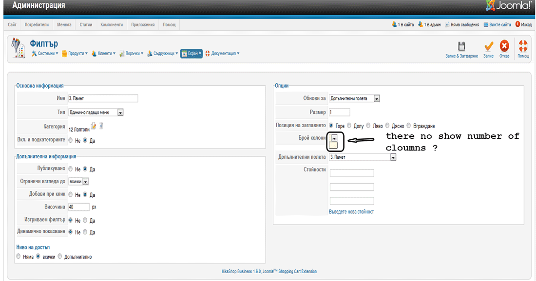 Hi friends, i have a problem with filter columns. First time when i created filters, thinks gone ok. But, when i open for second time some filter, for example "prod_ram" in field for filter columns no show number ? When i created them, in this field have number in drop down to chose....And situation is same, when i try to make new filter.....