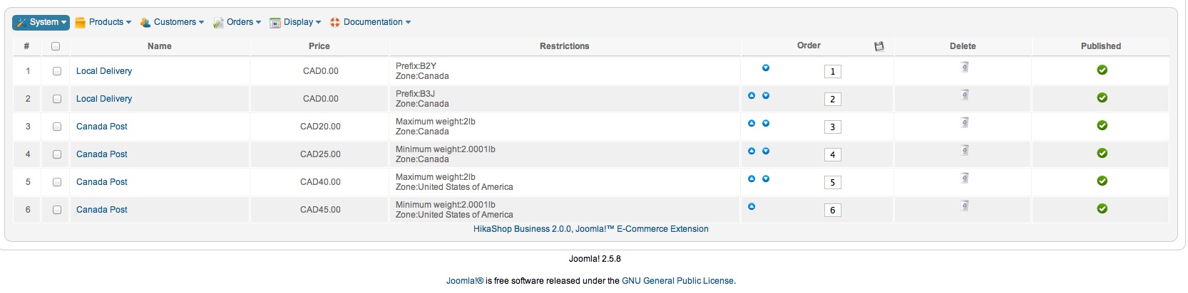 Thanks, that's a good idea, but I only showed 2 of the local delivery postal codes, in fact their are 12 of them, and they are not consecutive. I fact, I had to had the manual.php program a little bit for it even to work properly. I guess that I'll try to hack it a little bit more.