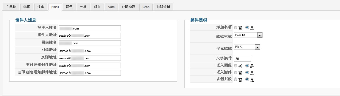 There are also some setting about "send from" email,etc.