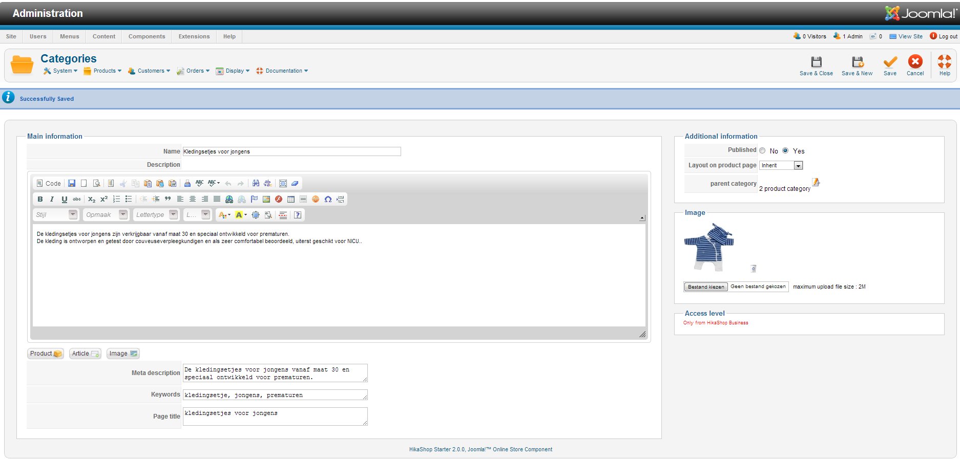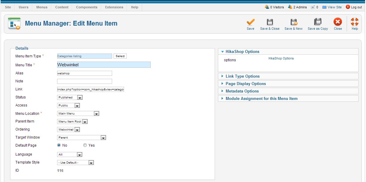 - Go to "Hikashop->Product->Categories"