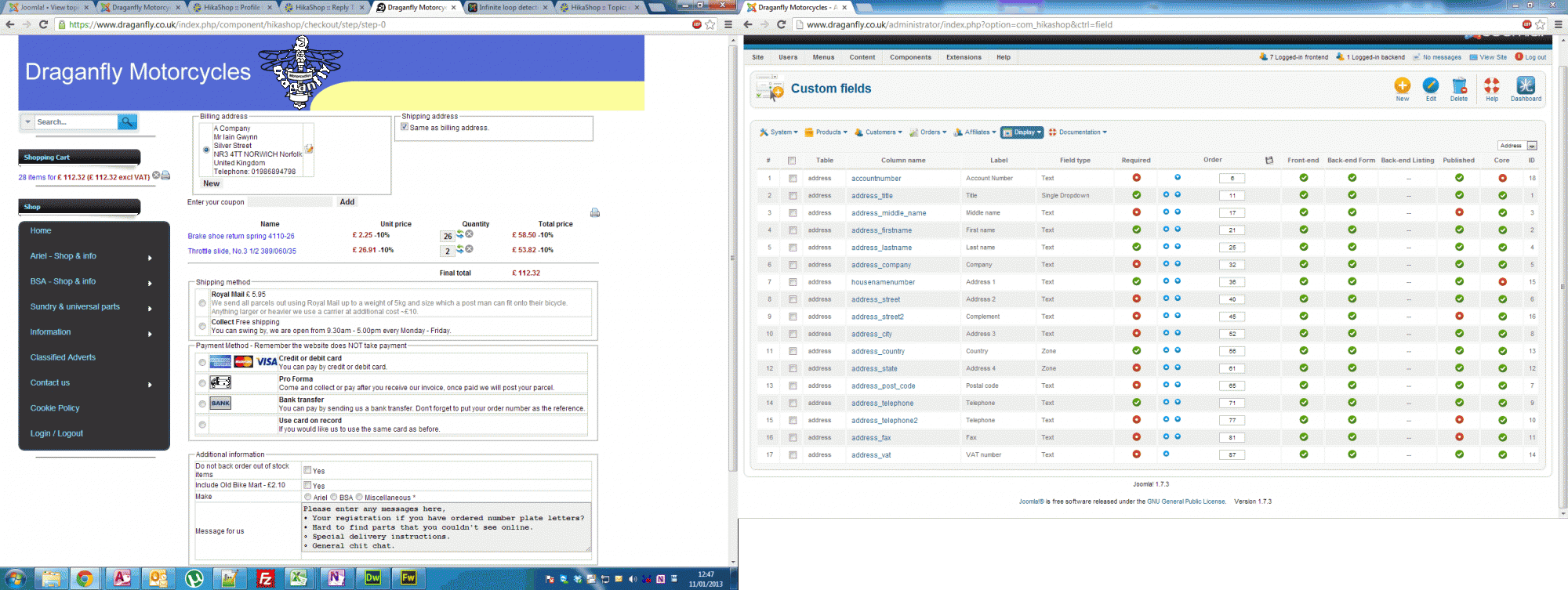 Whereas the shipping address, although incorrect since the test order is shipped to the same as billing address, is more in the format I would expect but also missing a couple of fields. All of the custom fields I have made are all in the address table. But not all of them show up on either the website in the checkout or the on e-mail, comes through. With only some of the information shown.