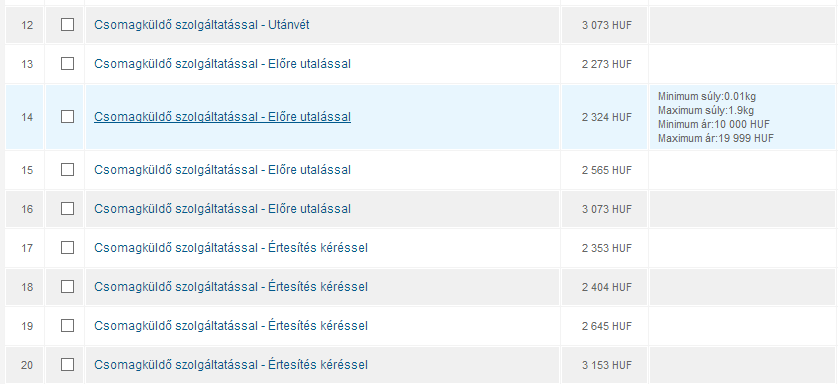 ('105','manual','','0','2324,10000','72','Csomagküldő szolgáltatással - Előre utalással ','<p>Előre utalásnál átvételkor nem kell