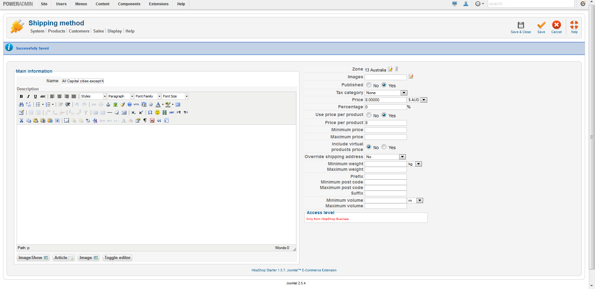 The trouble is that my client is very uncomfortable with computers and they can hardly put in a product description, let alone 4 shipping prices for each product.