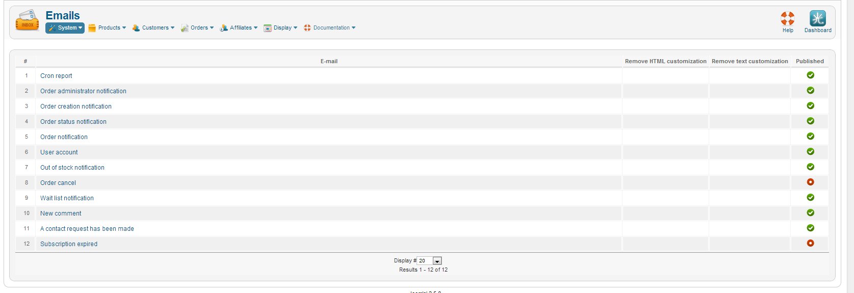 There is an email called "Order administrator notification".