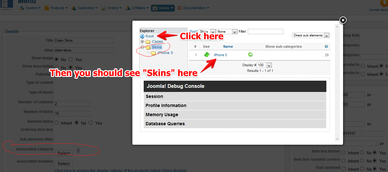 Am calling "Associated category" that the one shown in the image attached when you use the HikaShop Options in menu options.