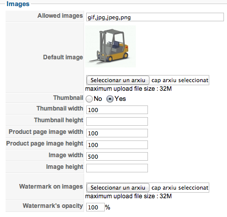 Making changes to the several Thumbnail and image paramaters under Configuration -> Main Tab -> Image Section does have no effect or an absolutely bizarre one breaking the whole apge.