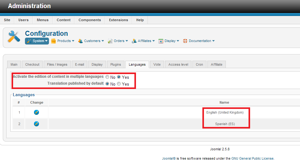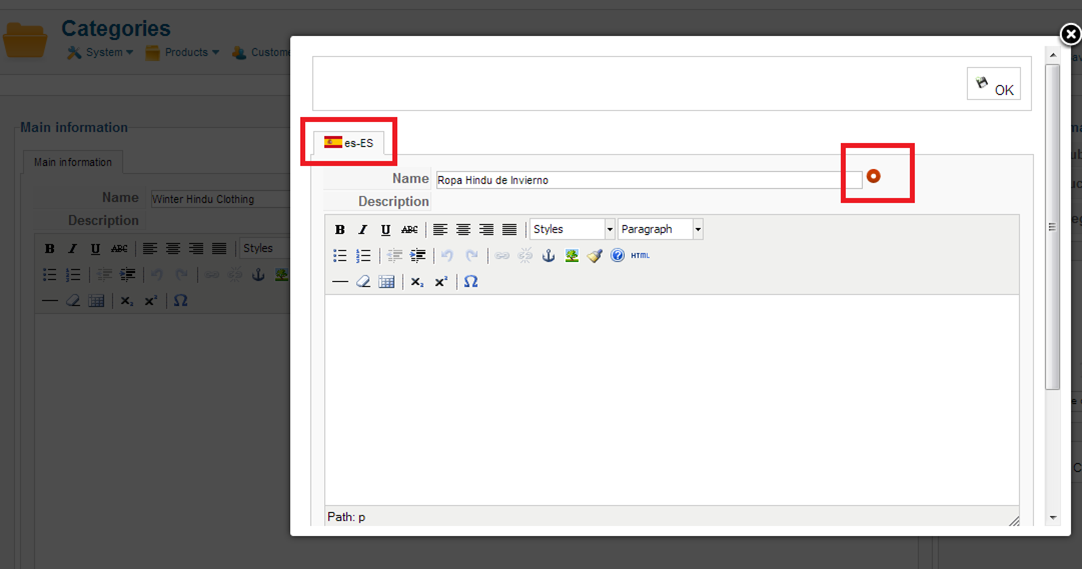 Here are 3 snapshots, I have the edition of multiple languages activated on hikashop.