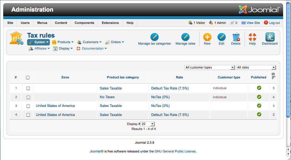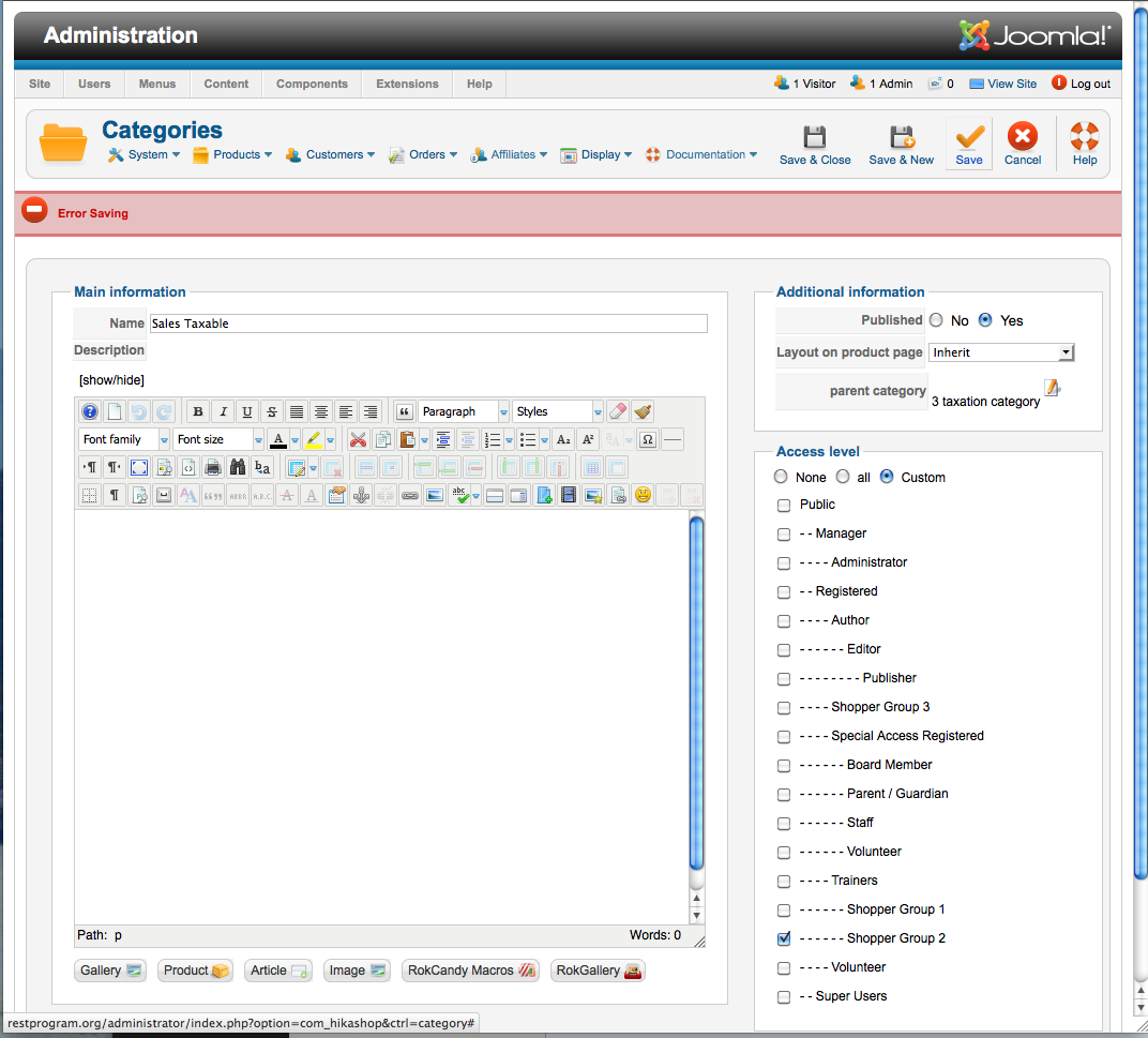 So there is no point in setting access levels onto different tax categories. You can only select one tax category per product.