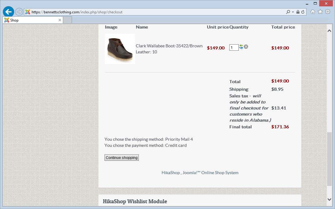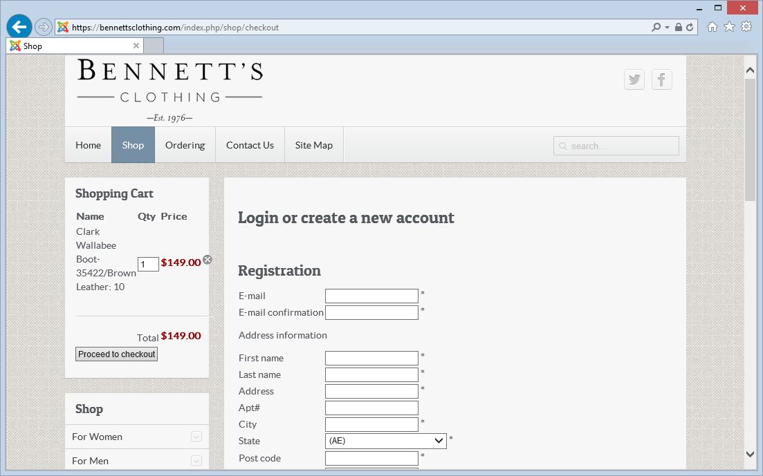 When you're ready to check out, the button to click to compete the order does not display in IE8 for this site.