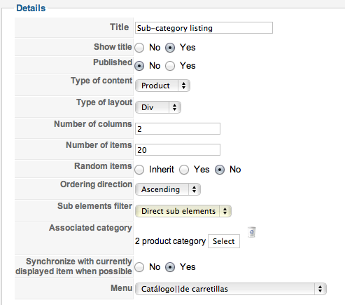 In the menu listing setup I have this configuration