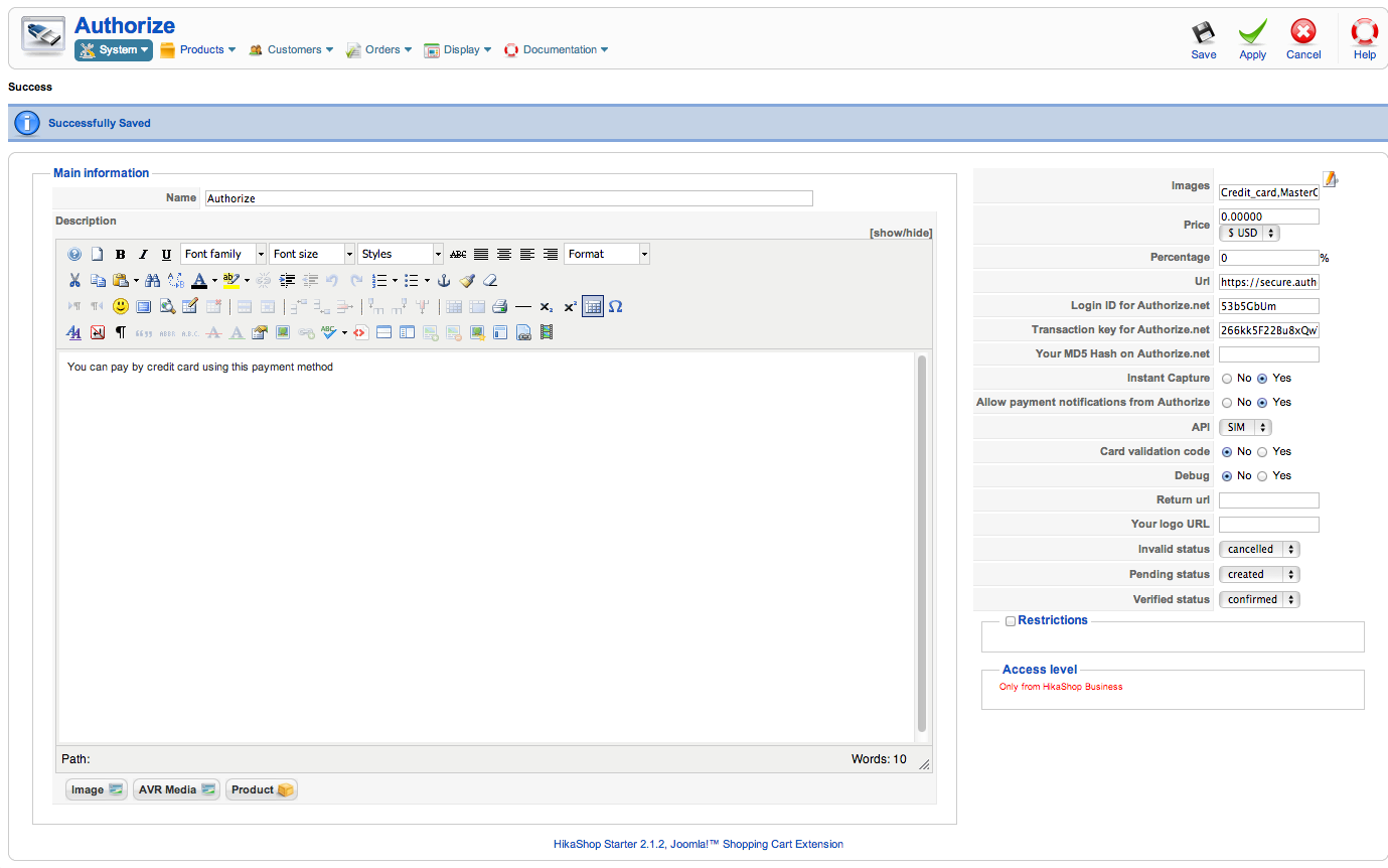 Using Authorize.net. That has been working well for 2 years. We used to use the manual shipping method, I but I upgraded Hikashop on Wednesday to include the UPS shipping method.