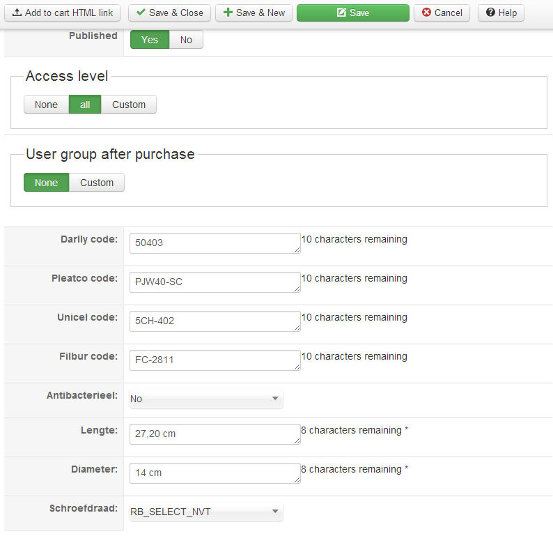 I created a custom field "Antibacterieel" in de product table, with a single dropdown field type.