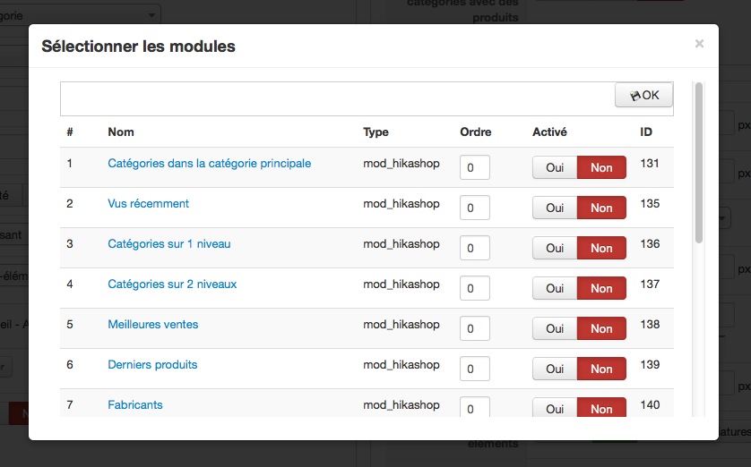 Dans la fenêtre « Sélectionner les modules » qui apparait (pièce jointe), on ne peut que cliquer sur le nom du module et ça nous mène dans le gestionnaire de modules de Joomla. C'est très désagréable. Je deviens tout mélanger à chaque fois.