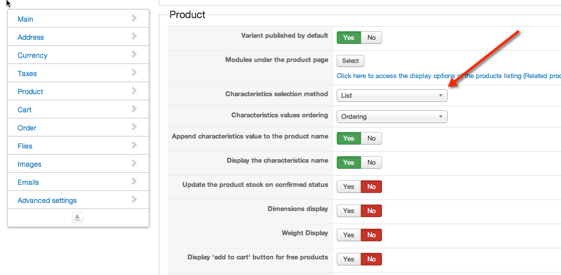 In that case, you want to change the "Characteristic display method" option of the configuration to "list".