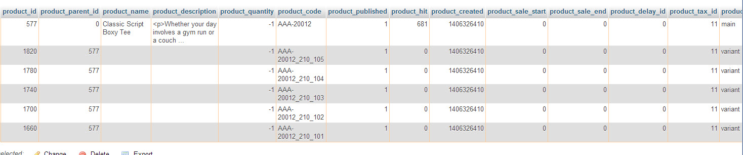 We have a product (at least this is the only one so far) that has a number of size variants.