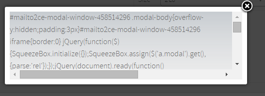 In all the HikaShop popups I get a lot of JQuery and JS script displayed along with the popup dialog. I am not sure if this is a template or js problem.