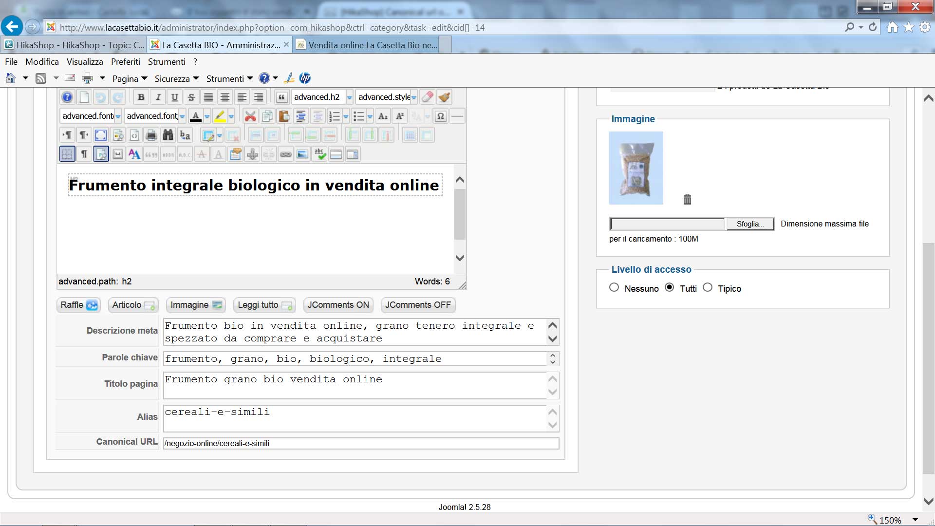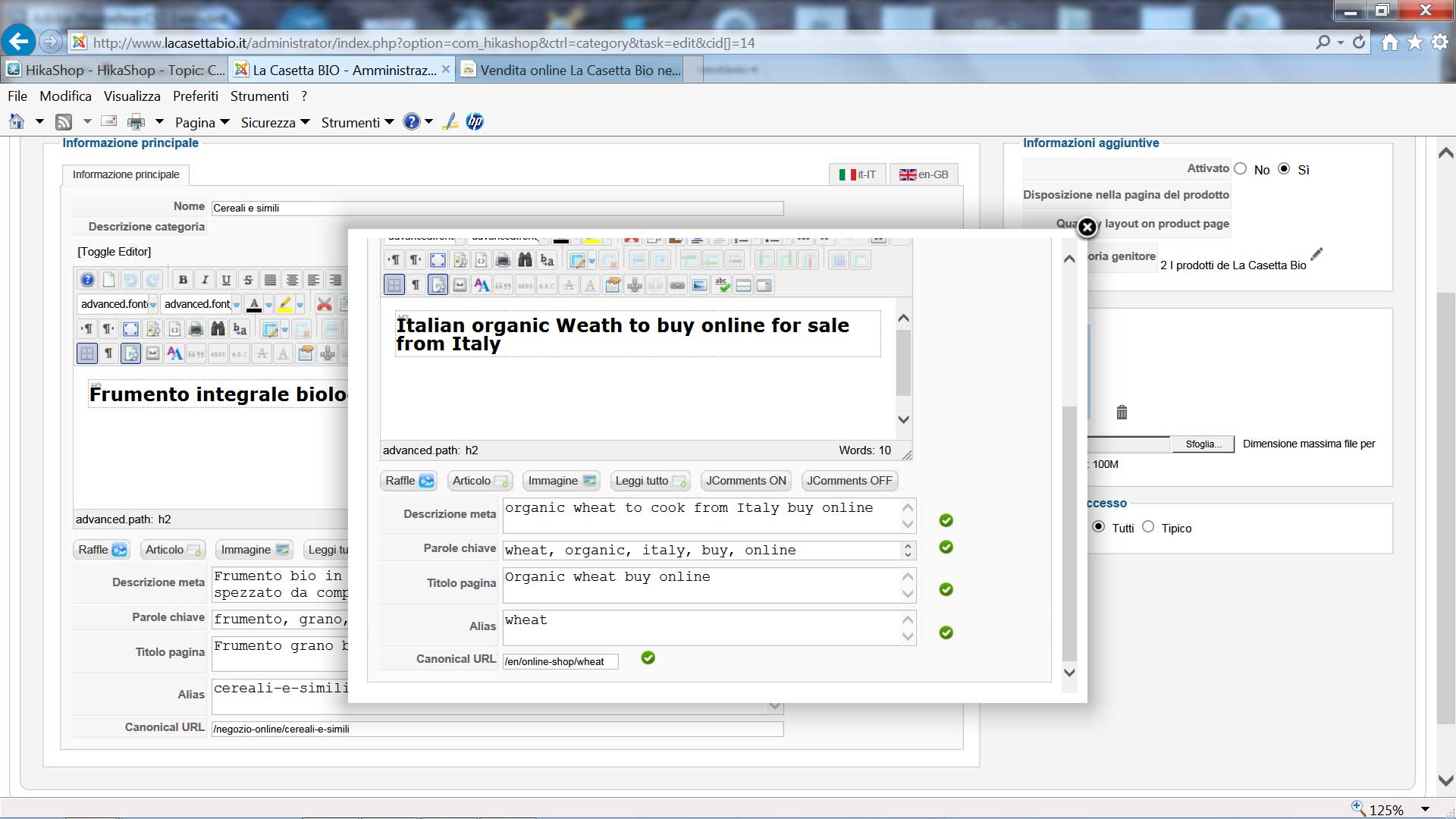 a category is called "Cereali e simili" - alias "cereali-e-simili" - canonical url "/negozio-online/cereali-e-simili"