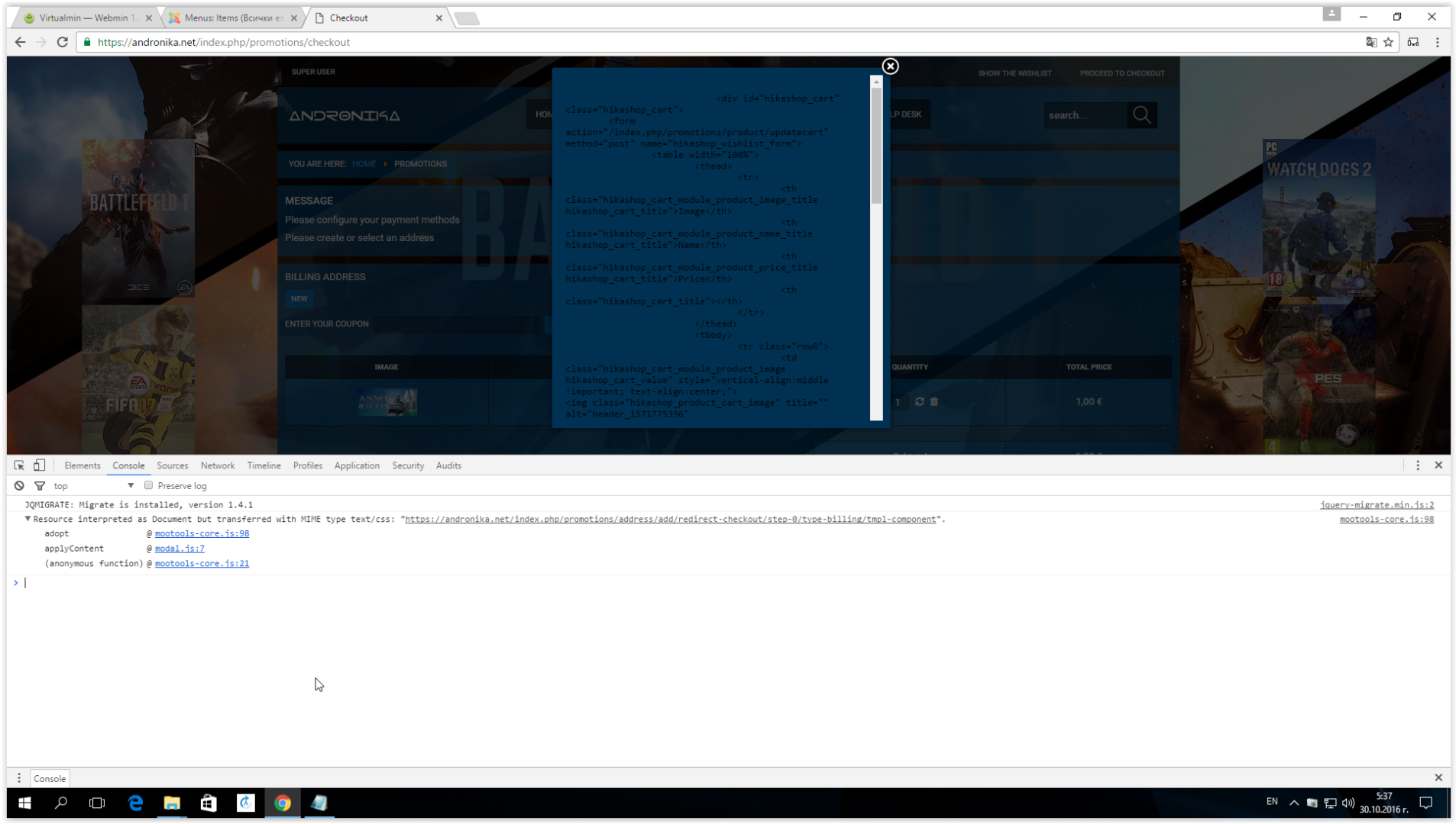 Hi I have the following problem - pop-up window for entering the address, instead of input fields code is displayed. How can I fix it?