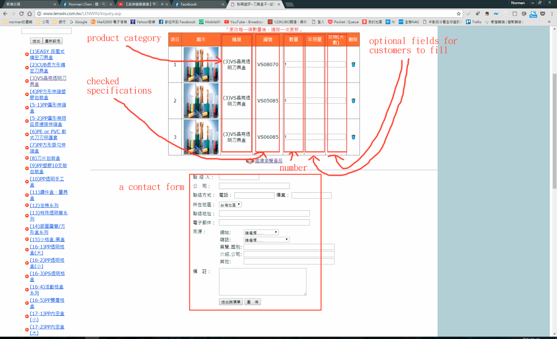 and add the chosen products to inquiry form.