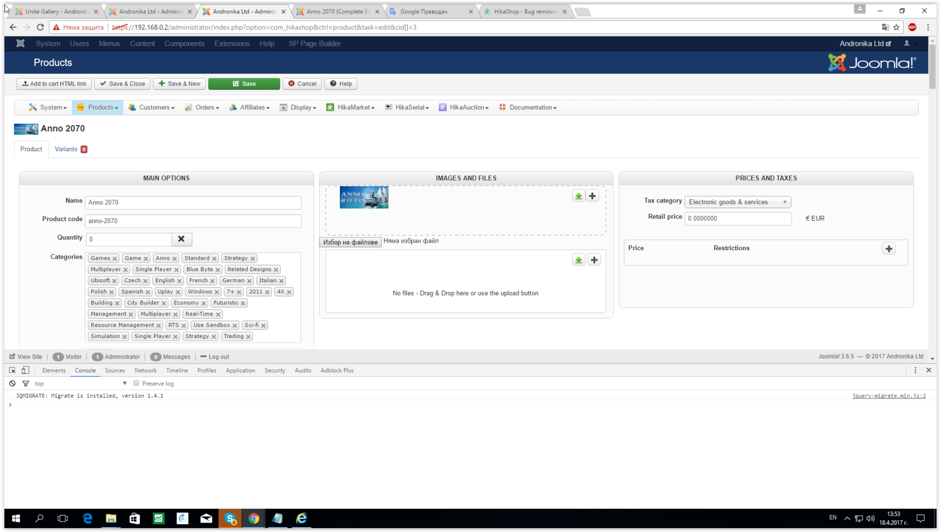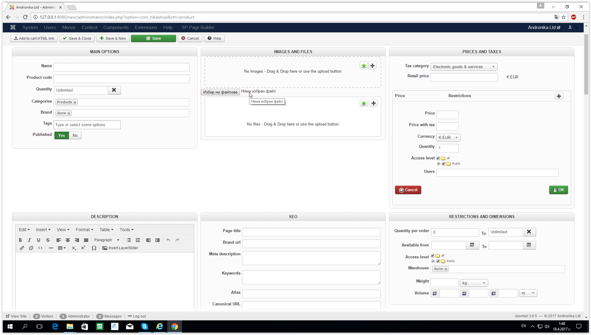 I have found the problem file and it is located administrator/components/com_hikashop/views/product/tmpl/form_imag.php
