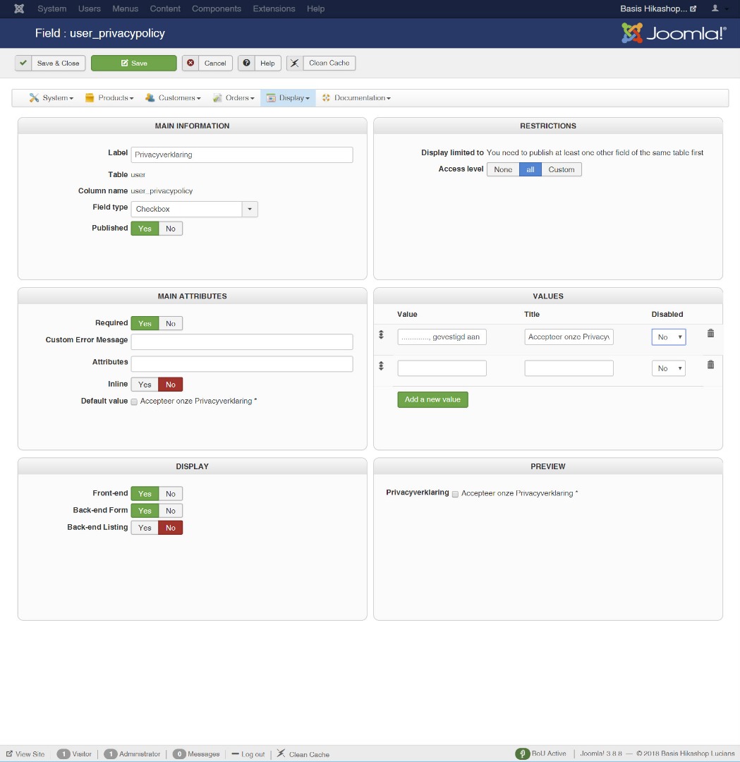 -- Joomla version -- : 3.8.5