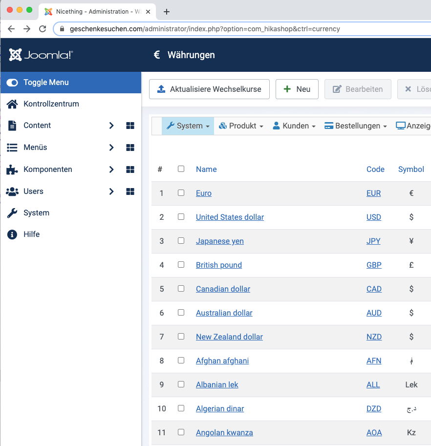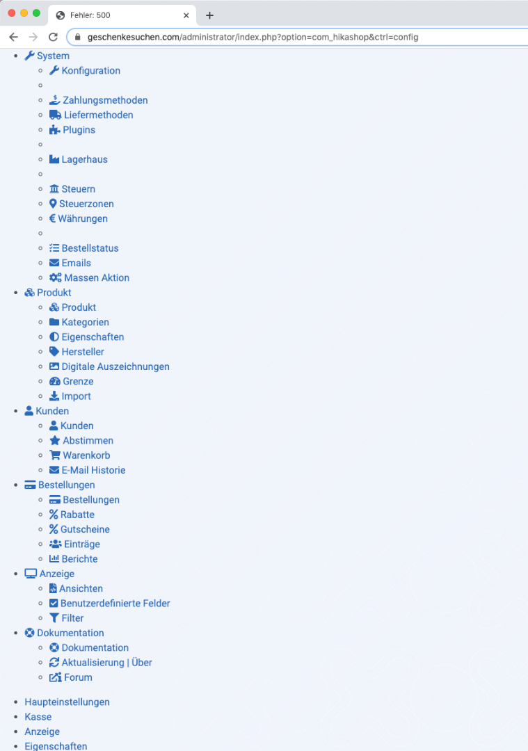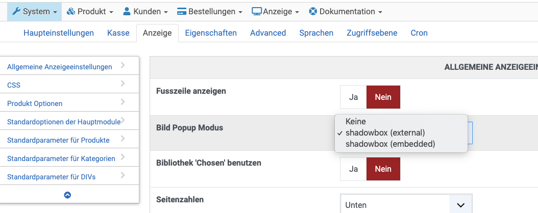 After that the configuration page figures normal with all submenu items. The image popup modus menu look like the screenshot attached.