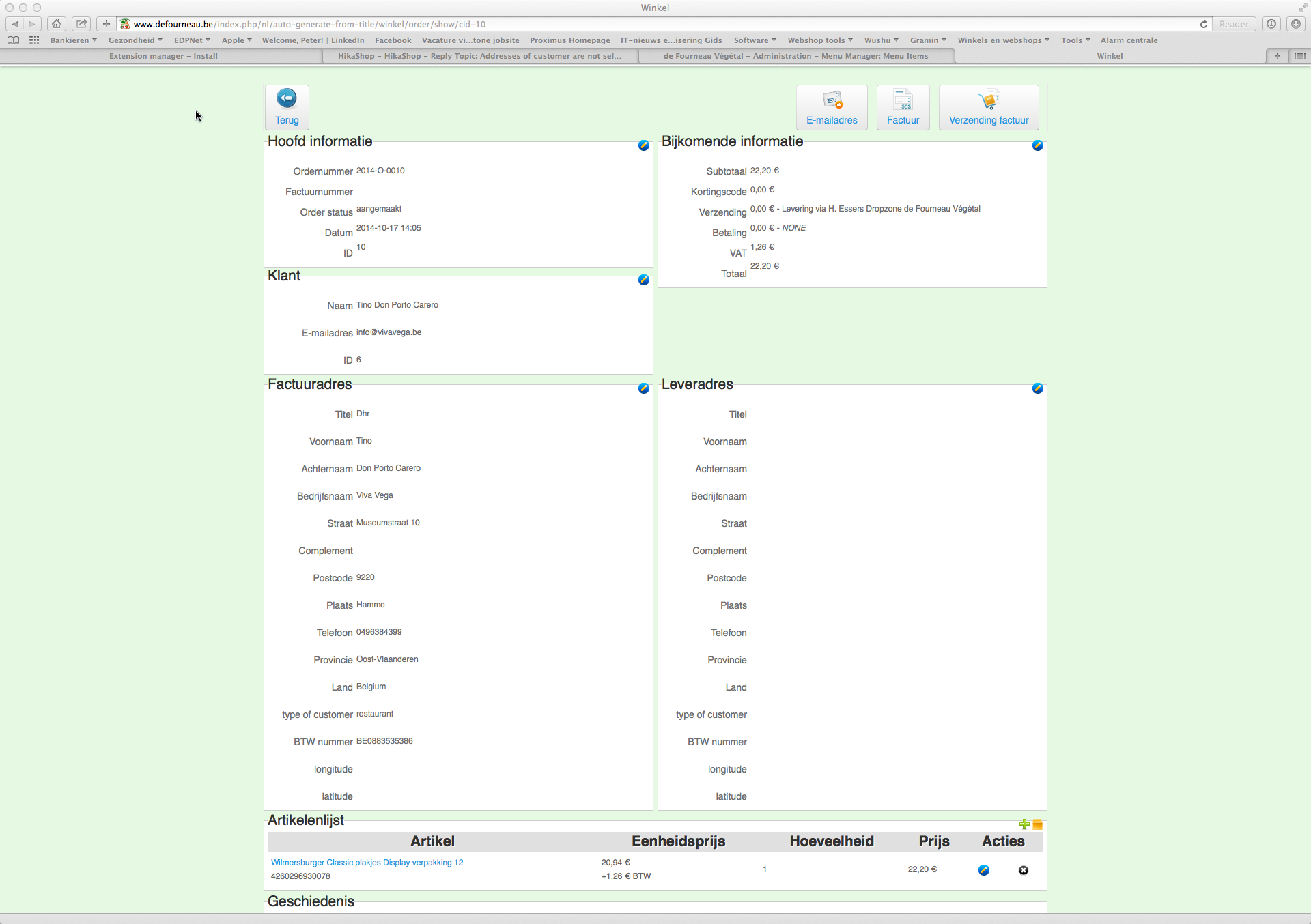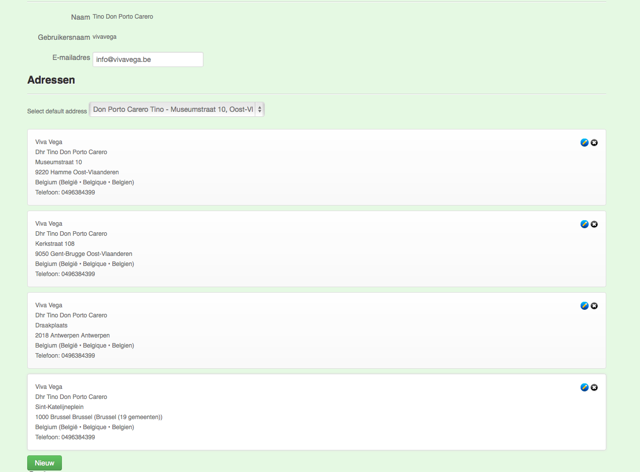 I have created customers with the default address (for invoicing) this address contains the field VAT. I added also other addresses which are the delivery addresses (see attachment 1). When I enter an order I want to be able to use those addresses I entered during customer creation.