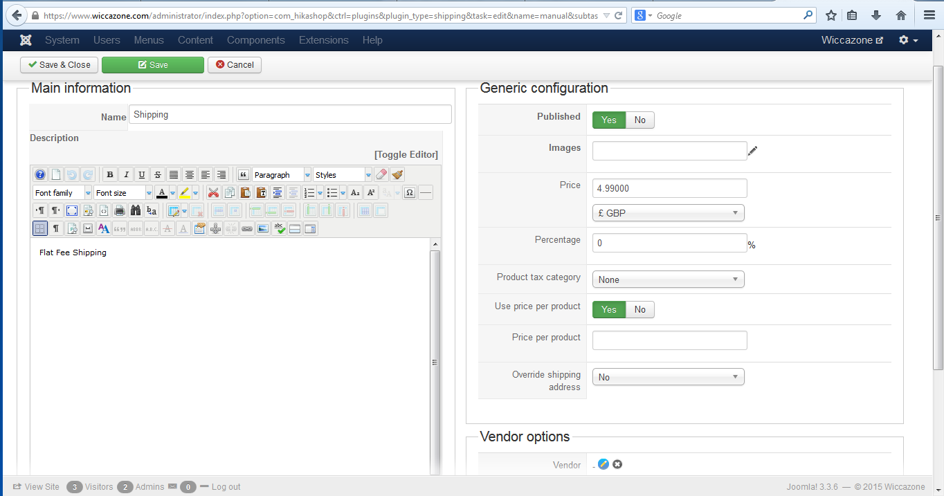 The main thing that I need is for my Vendors to be able to charge their own shipping costs and be able to enter a price per product or if a customer orders more than one item from them - in this instance, they would need to be able to charge a flat rate or even offer free shipping if it is more than a certain amount. However, I am still very confused with the shipping setup in hikamarket. I have added a general shipping method and added a price to it, but I see nowhere on the vendor panel in the front end for the vendor to choose a shipping method.