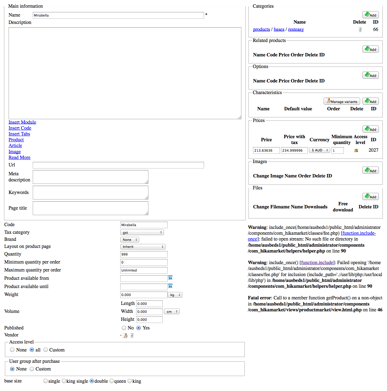 product page errors
