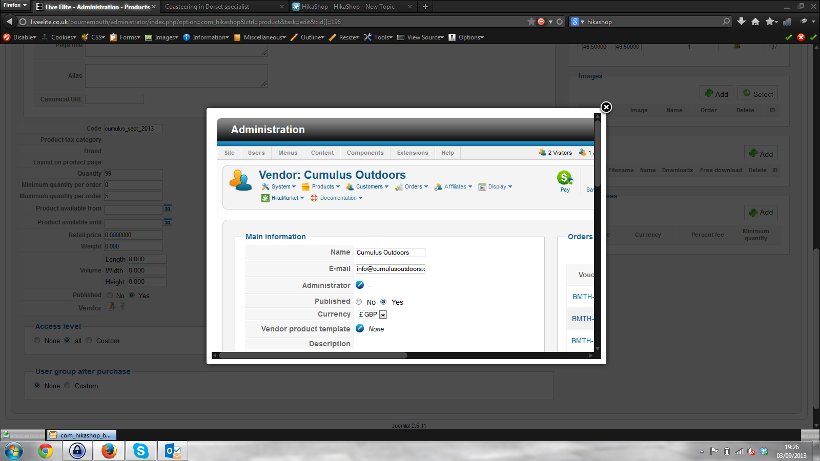 If you just touch to the HikaMarket configuration, well, it is saved so the vendor not saved is not tragic.