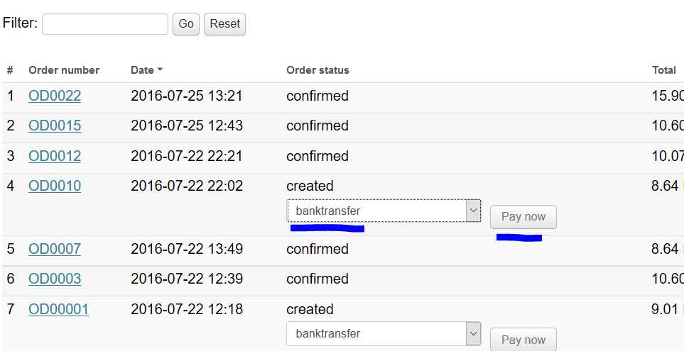 Payment of orders not paid immediately-bank transf