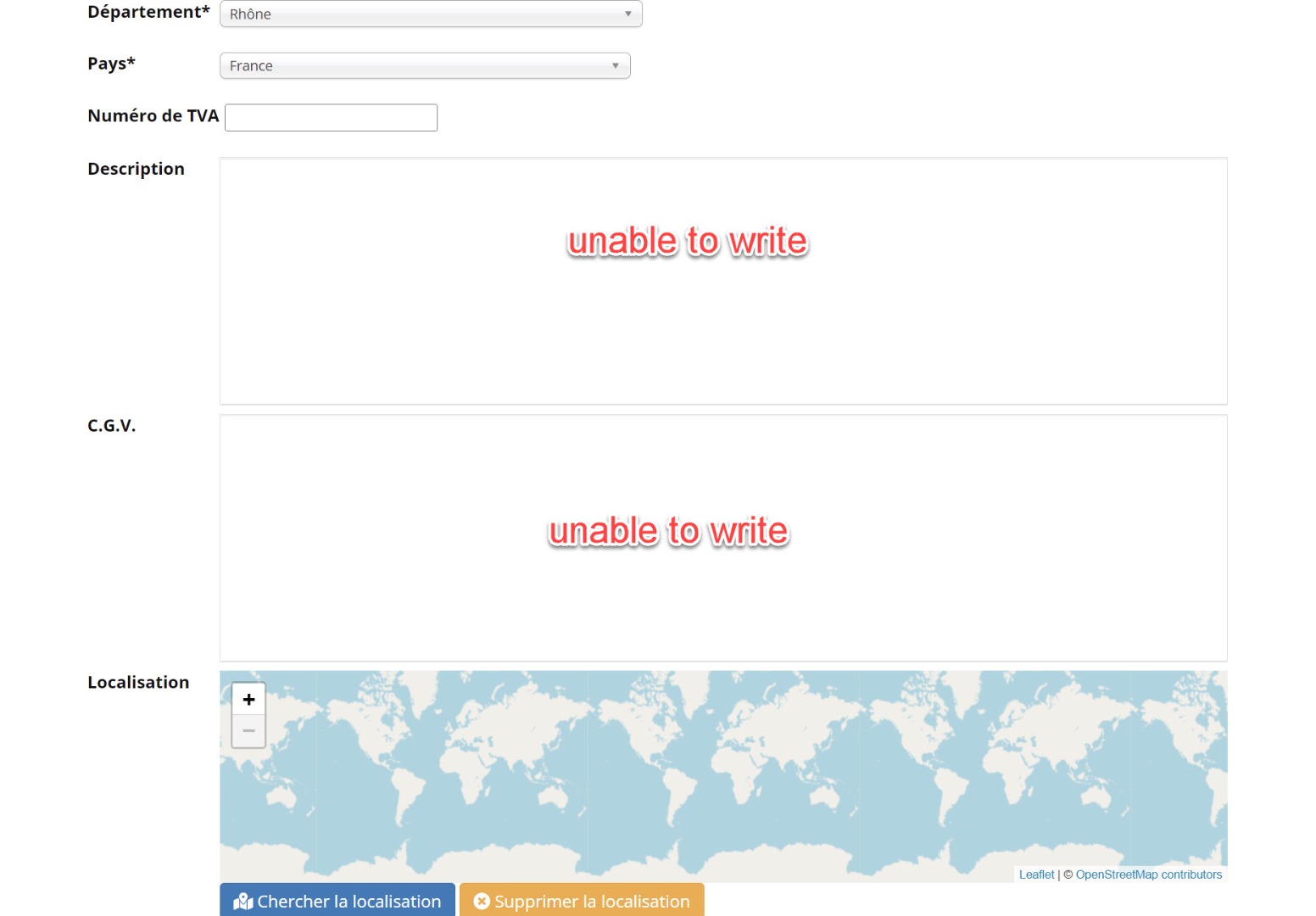 I cant write in the fields for the description and the terms in the vendor fields.