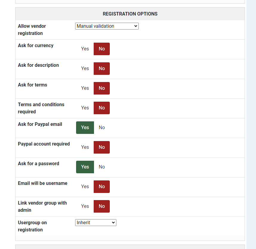 Configuration > Market options > Registration Options > Allow vendor registration MANUAL VALIDATION