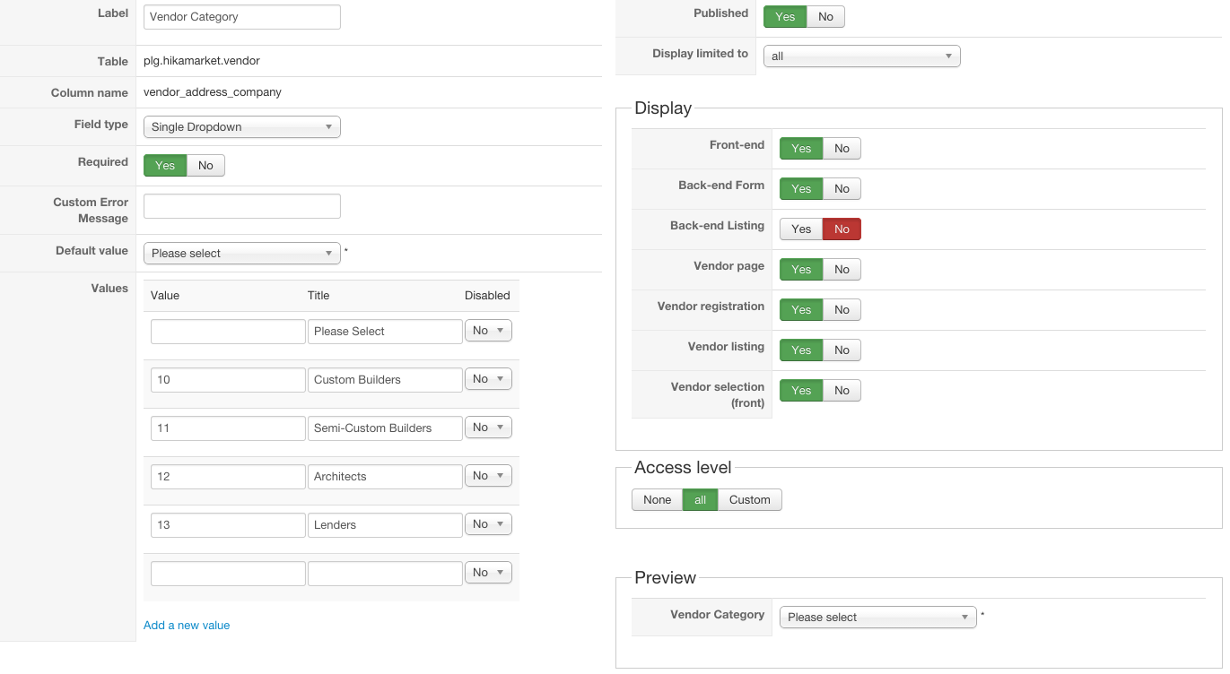 echo $this->fieldsClass->show($oneExtraField, $this->vendorFields->$fieldName);