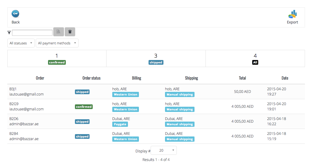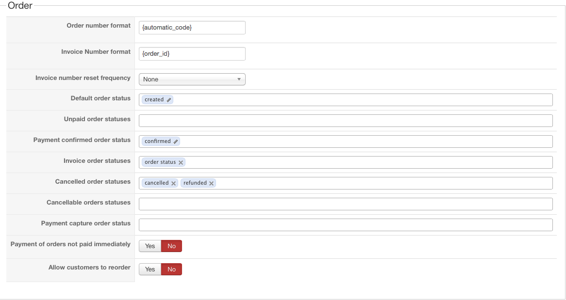 Invoice Order Statuses: confirmed, shipped, printed