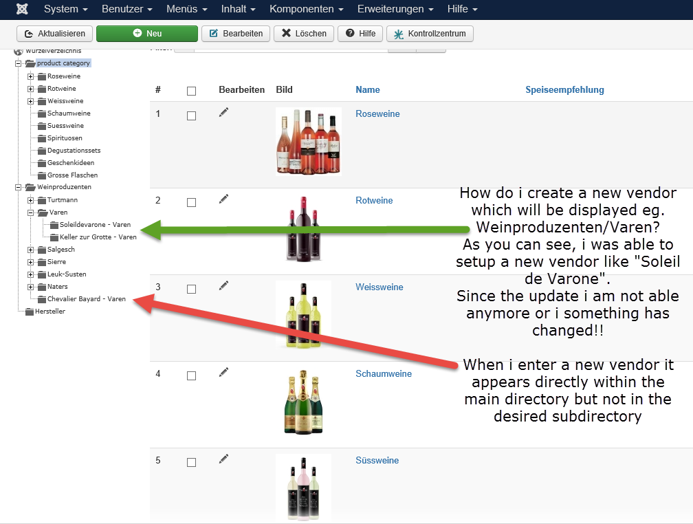 Please note that once the vendor category is created, the category won't move (except if you edit it).