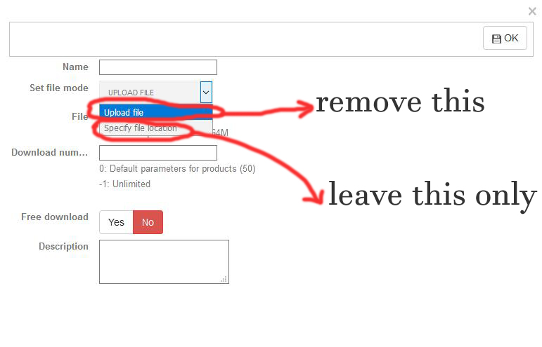 While I understand a part of your request, it is unfortunately incomplete since the "specify file location" could allow to point local files in the server ; thus only remove the "upload" is not really a full and complete solution.