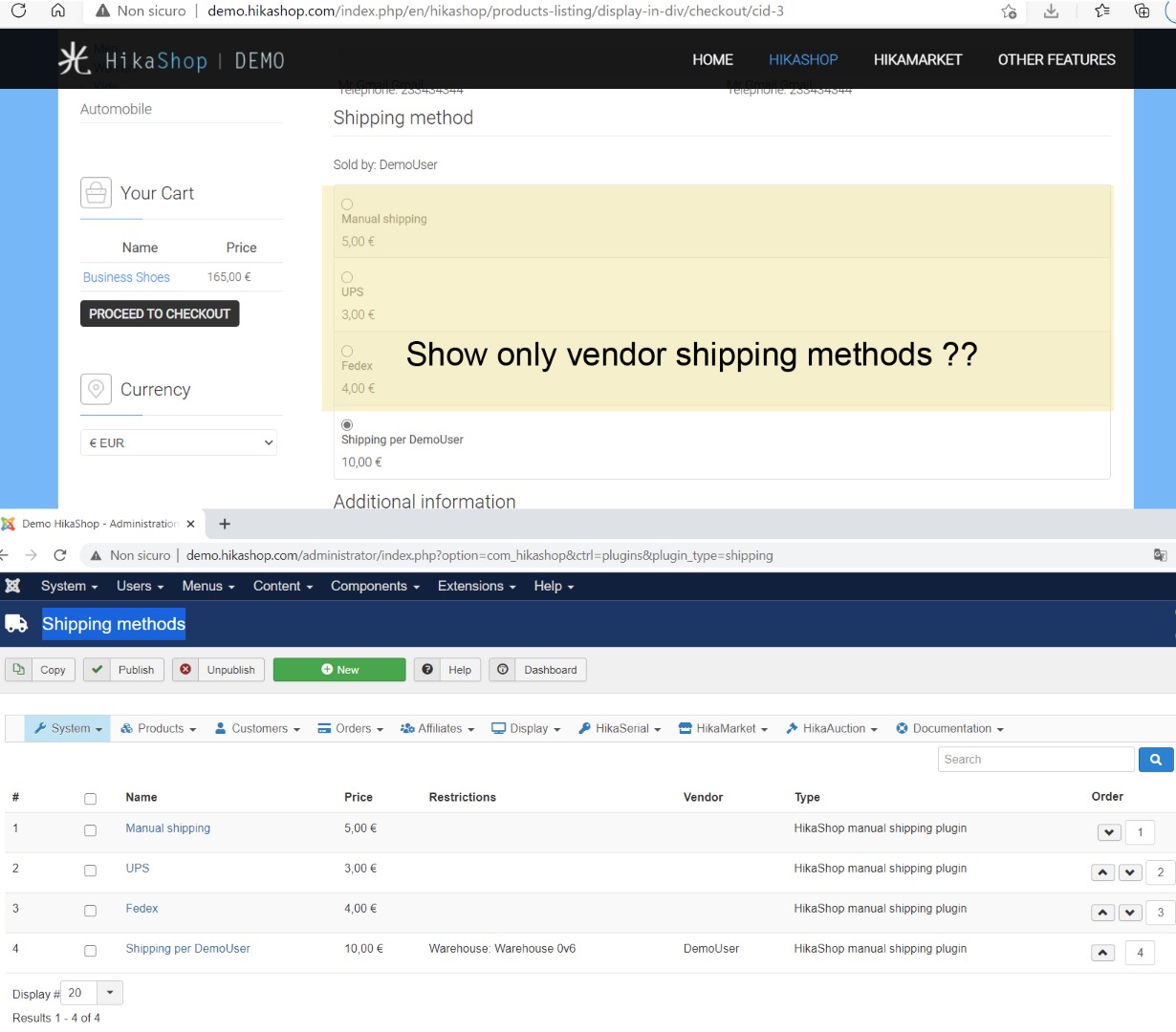 Show only vendor shipping methods ??