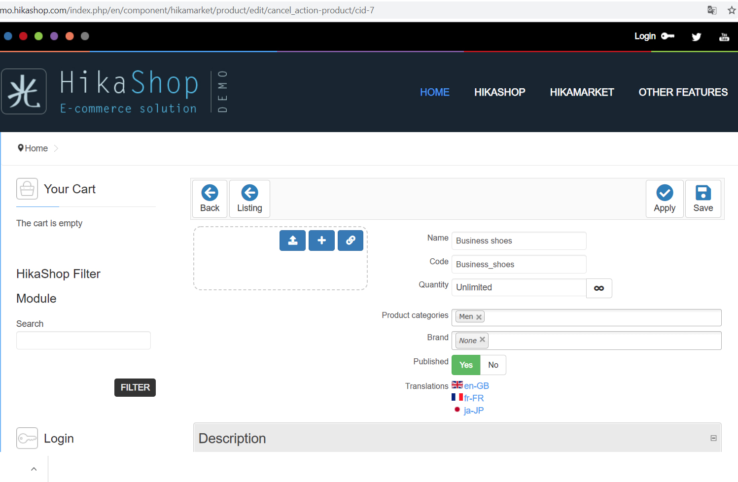 In HikaShop it is at the left of the listing. In HikaMarket it's a floating element which is displayed via the breadcrumb.
